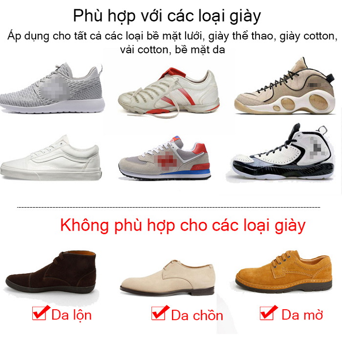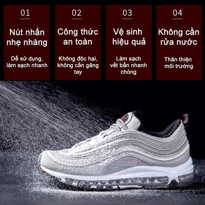 Công dụng : Giúp vệ sinh giày dép 1 cách nhanh chóng mà không cần qua nước hiệu quả chỉ trong 5-10 phút