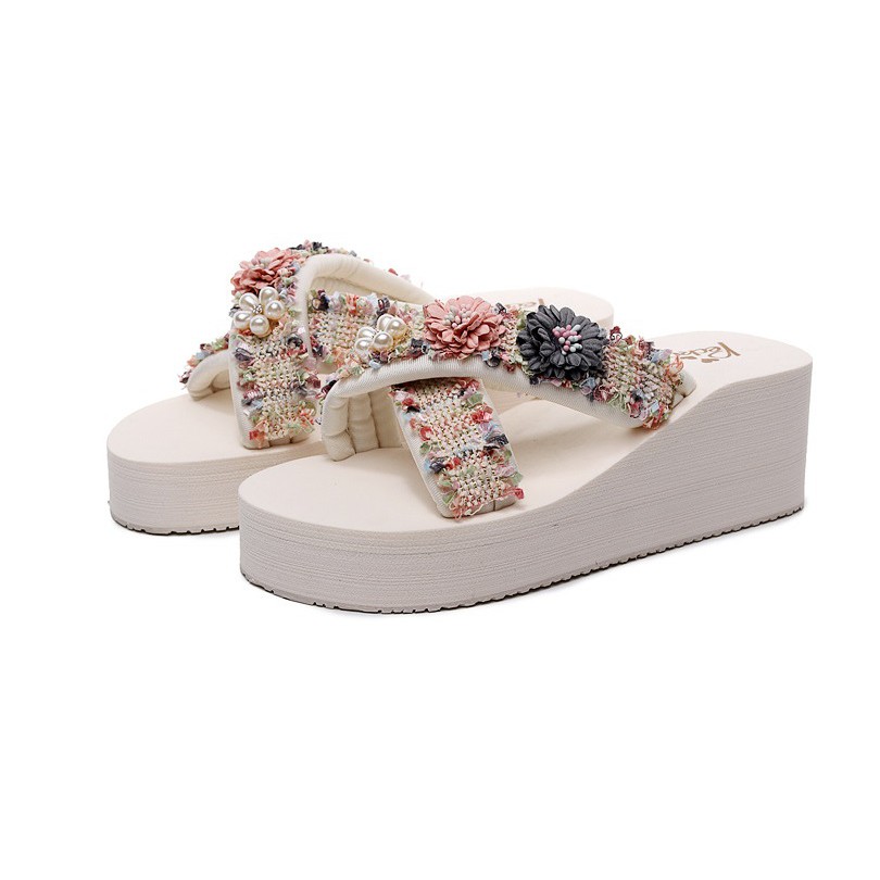 Giới thiệu (Mới 2022) Dép đế xuồng nữ đế cao 6cm 3cm xăng đan quai chéo đính ren hoa thời trang