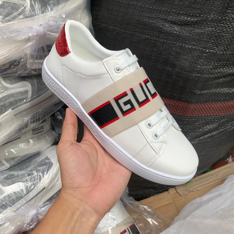 Giới thiệu [Ảnh Thật] Giày Sneaker Da GG Dây Chun Chữ Gót Vảy Đỏ