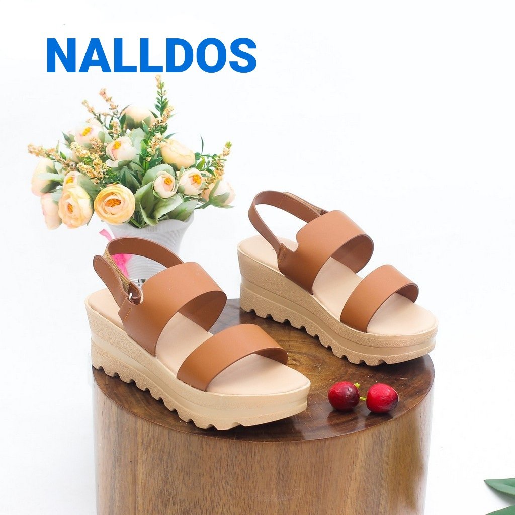 Giới thiệu [Bền-Đẹp] Giày nữ NALLDOS Sandal đế xuồng 5cm nguyên khối siêu nhẹ chống trượt Quai ngang da Microfiber 4 màu thời trang