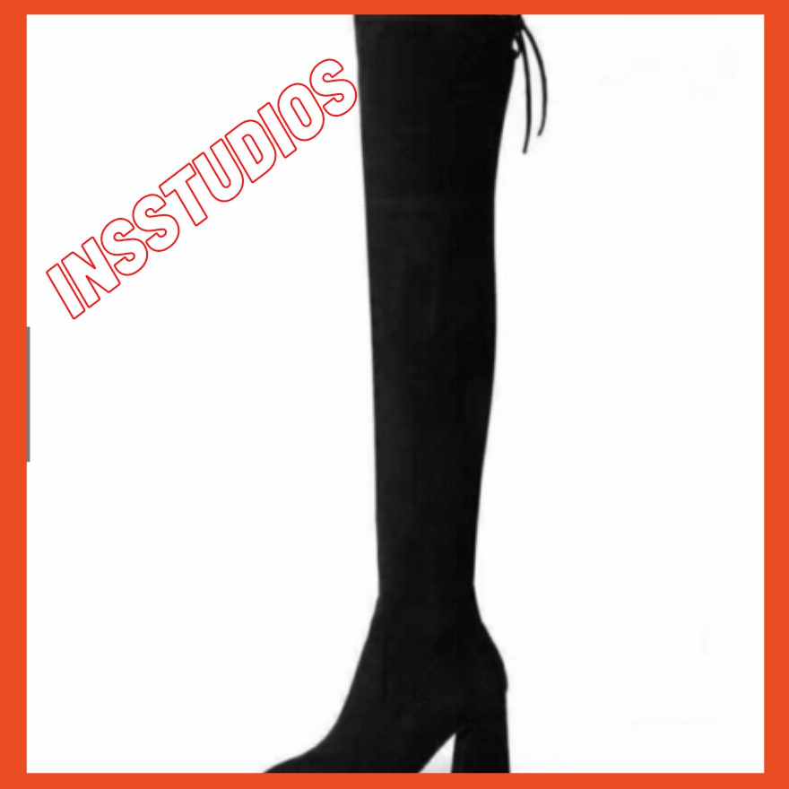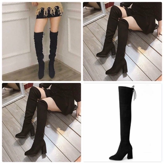 Giới thiệu Boot đùi nữ da lộn, bốt đùi nữ da lộn cao gót lót lông khoá cạnh gót vuông buộc dây thời trang du lịch công sở hàn quốc
