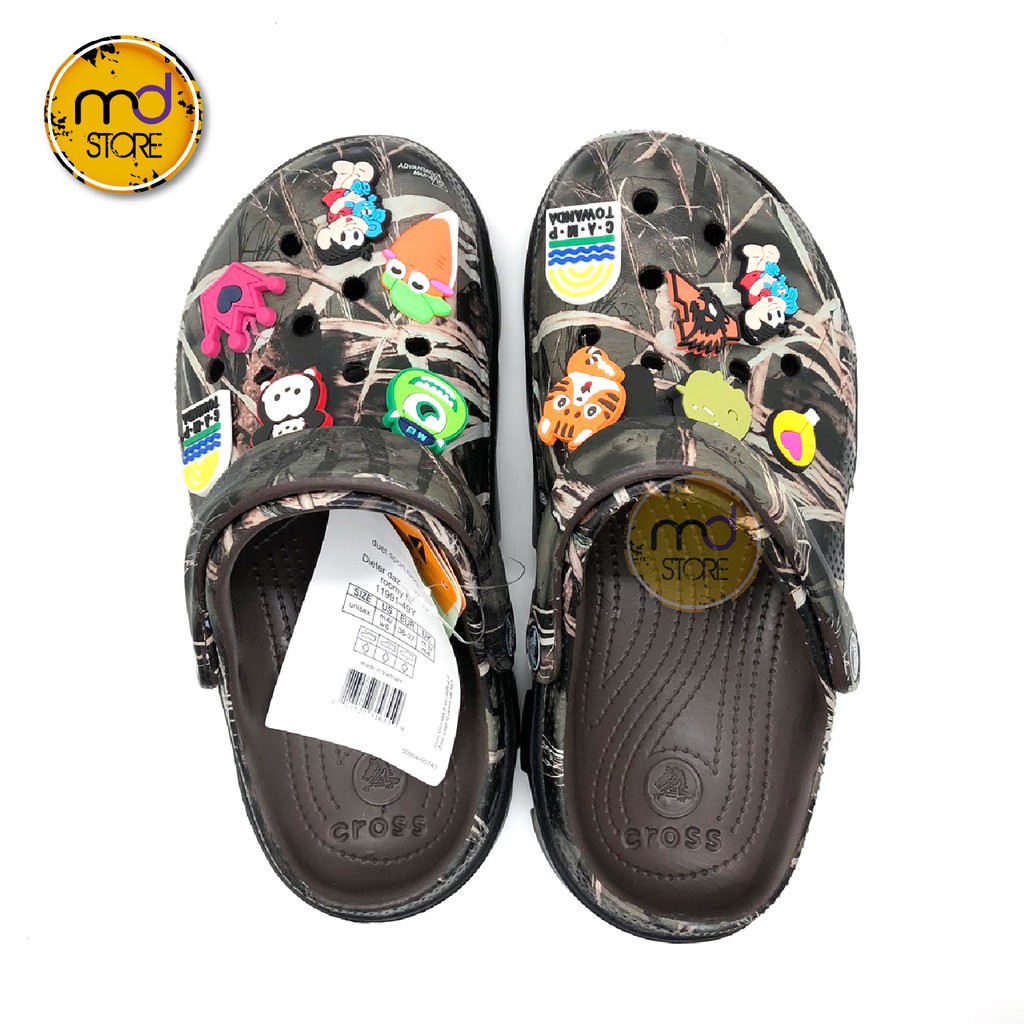 Giới thiệu Dép Cross vảy sơn camo đế đen lượn sóng, Dép Cross cá sấu bít đầu hotrend giới trẻ - Tặng kèm 12 Sticker + Hộp