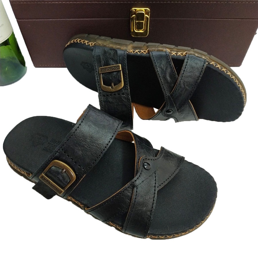 Dép da nam Thiên Ân thời trang thanh lịch cao cấp da bò thật màu đen dành cho nam hiệu MABLACKA D103