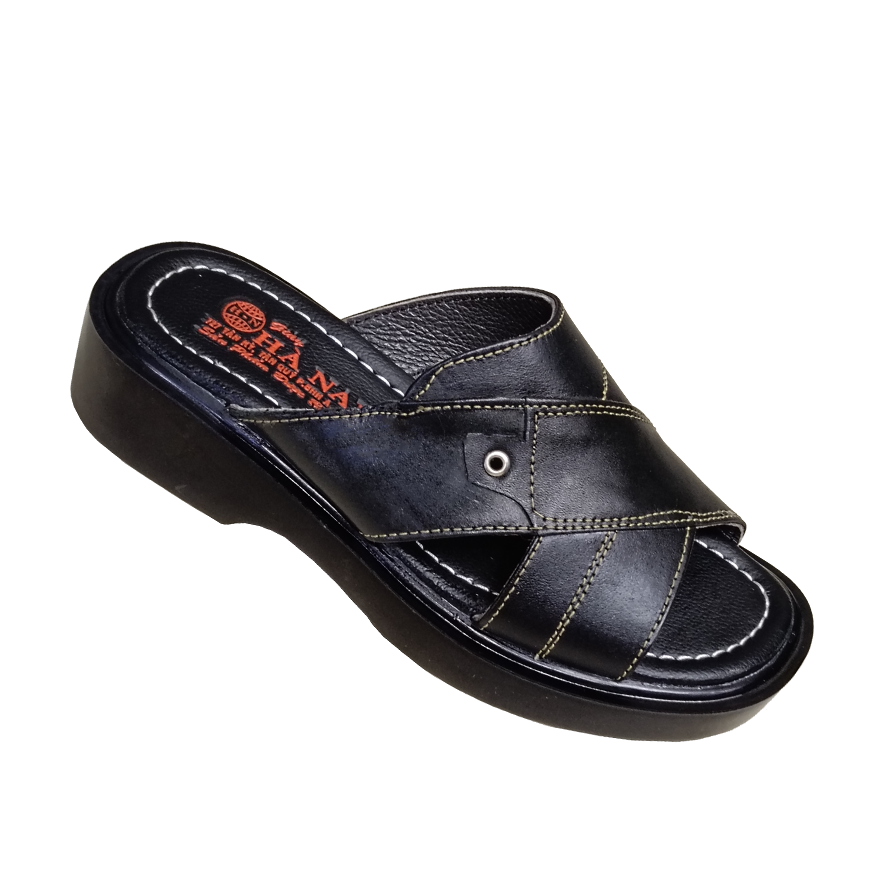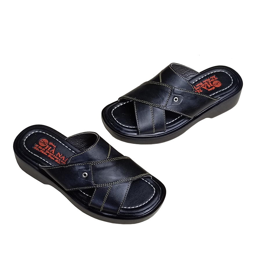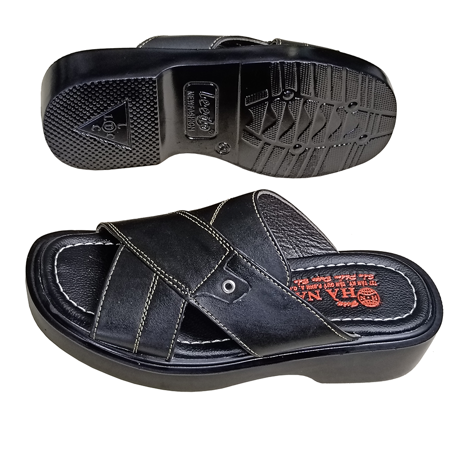 Dép Nam Quai Ngang Da Bò Thật TiTi ĐÔ Đế Cao Dành Cho Người Thấp DNA2084