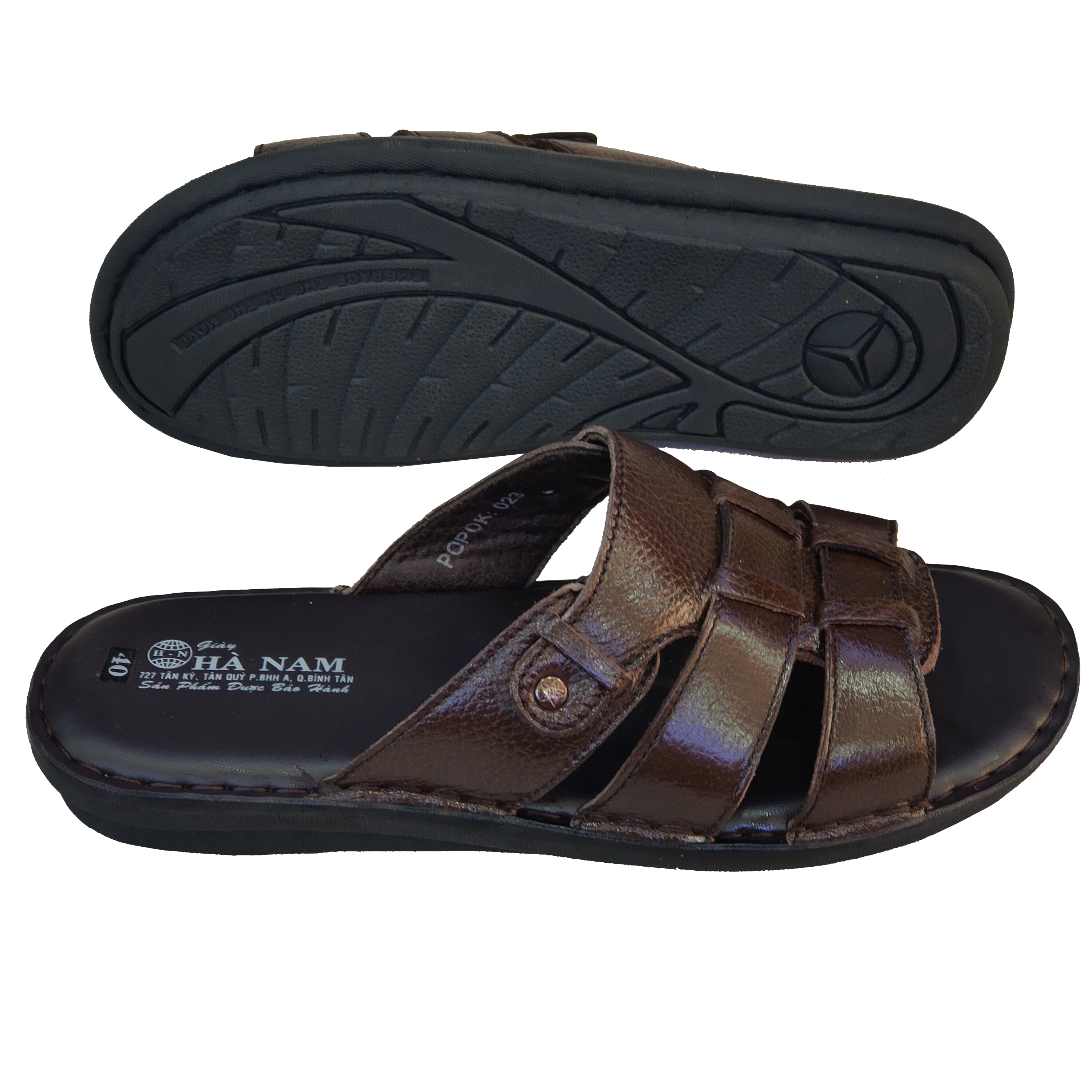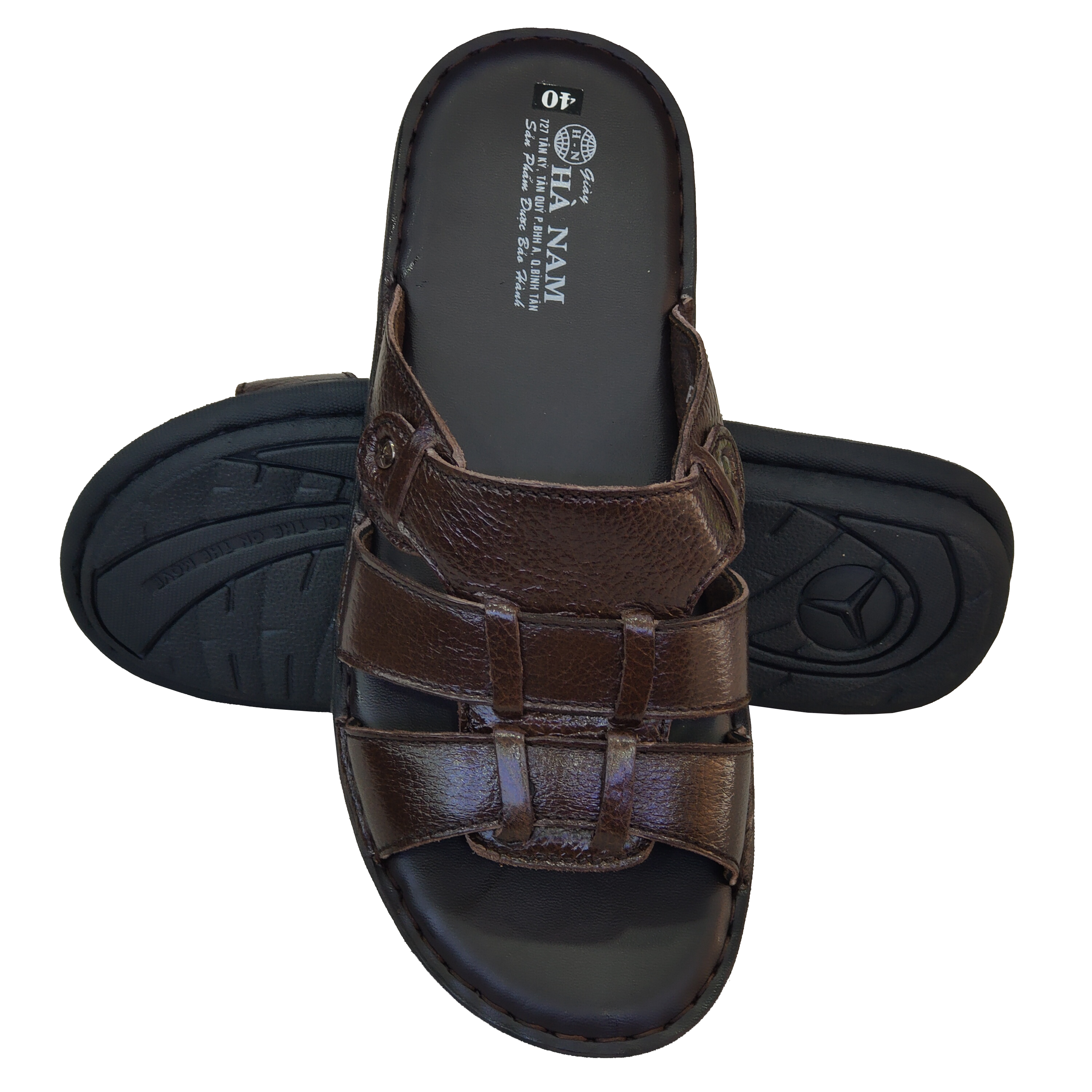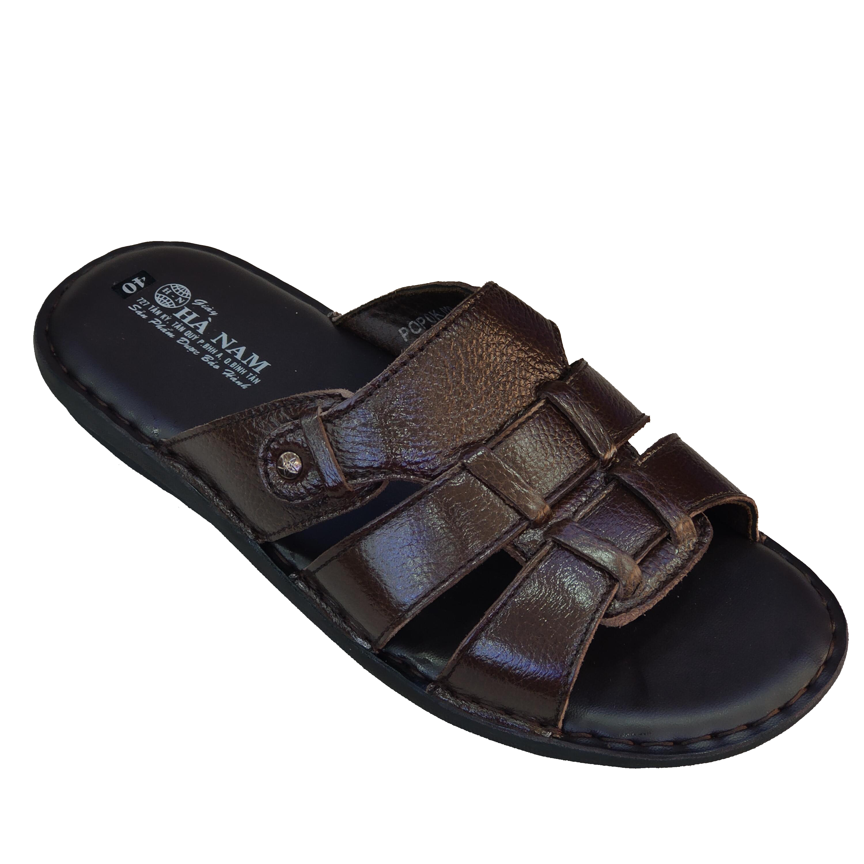 Dép nam quai ngang da bò thật TiTi ĐÔ cao cấp DNA2118d