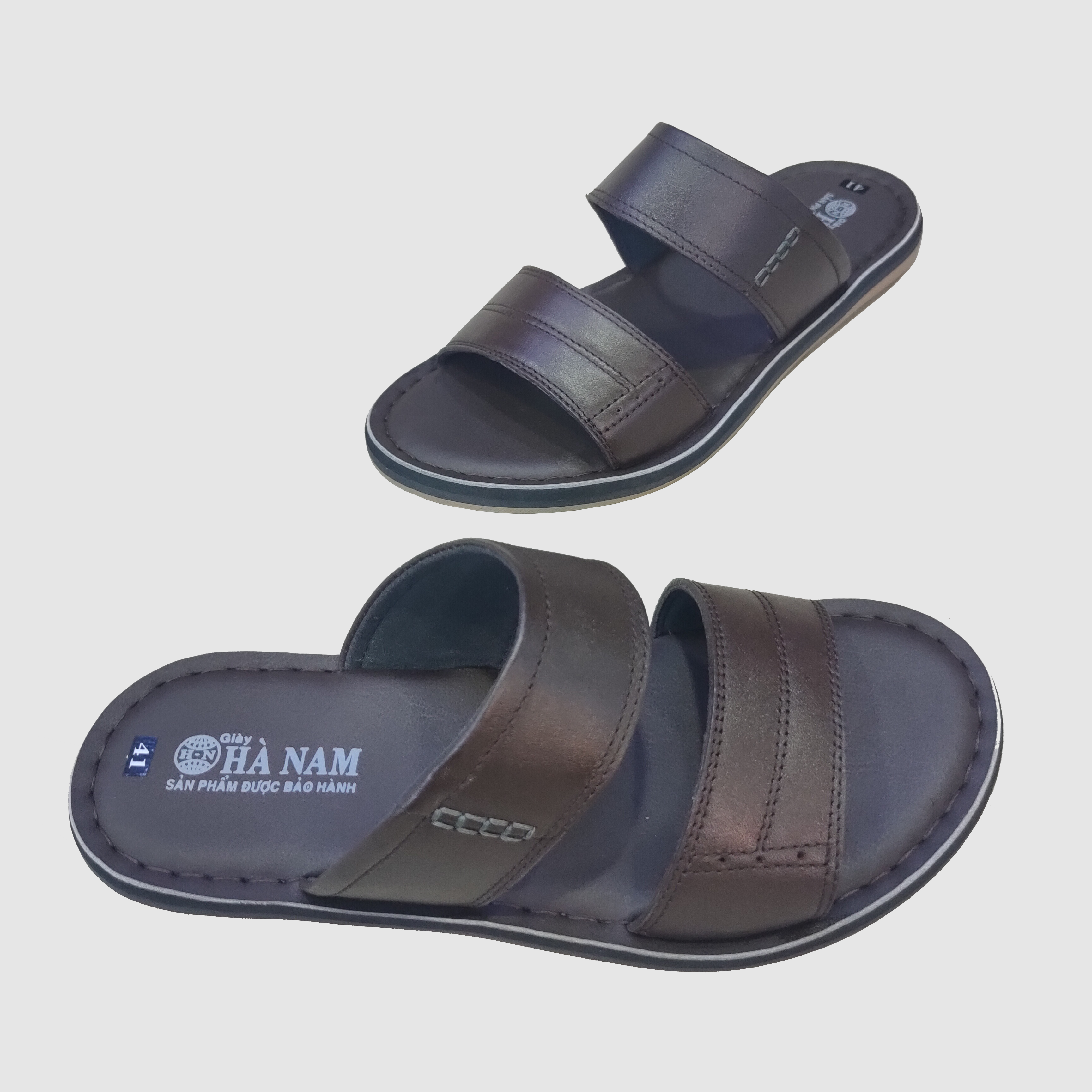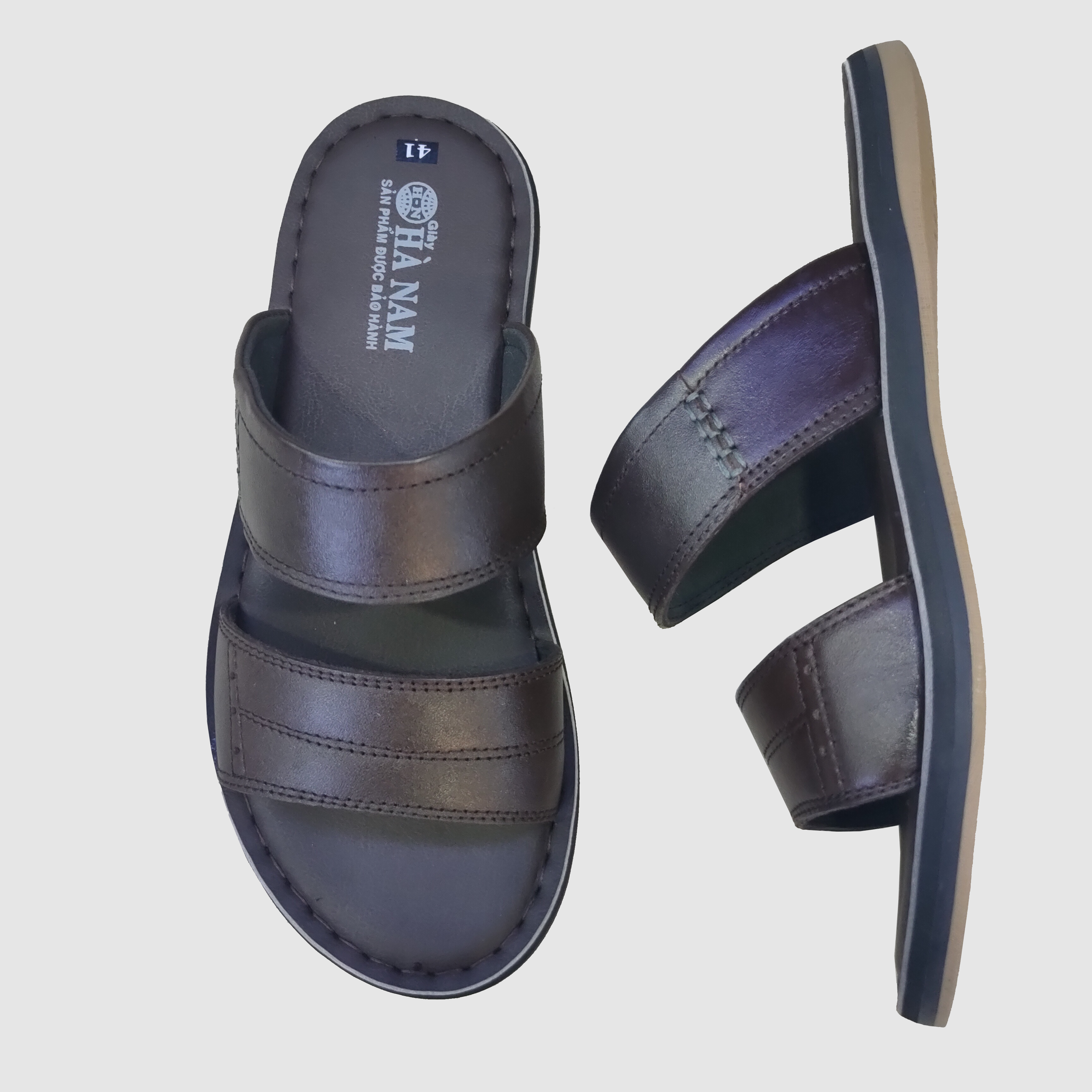 Dép nam quai ngang da bò thật HÀ NAM cao cấp DNA2153d