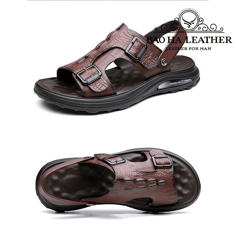 Dép nam quai ngang da dập nổi BHD7100 thiết kế trẻ trung, năng động với chất liệu da thật bền đẹp dập nổi kết hợp với khóa cài nổi bật tạo nên sự sang trọng, lịch lãm khi đeo đi chơi, đi làm...