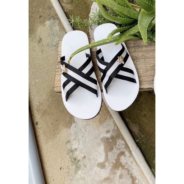 Giới thiệu Dép quai chéo dù trắng đen đế trắng nam và nữ size từ 35 nữ đến 43 nam