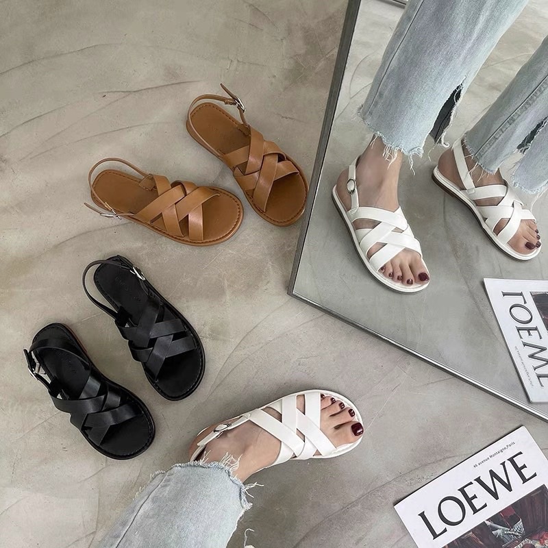 Giày Dép Nữ > Xăng-đan và dép > Xăng-đan đế bằng || Dép Sanđal Đan Chéo Bản Da Mềm Cao Cấp