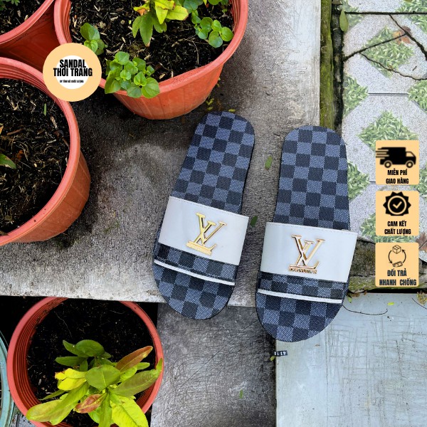 Tên sản phẩm: Dép sandal quai ngang Nam nữ trắng xanh LV cao cấp giá rẻ sandal đồng nai