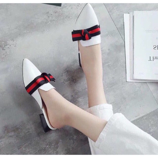 Giày Dép Nữ > Giày đế bằng > Giày sục & Giày búp bê || Dép sục nơ kẻ