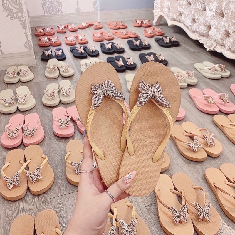 🦋 Dép xốp Thái, dép kẹp nữ đính Charm bướm