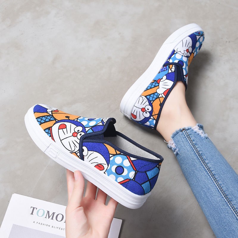 Giới thiệu DORAEMON Giày Lười Vải Canvas In Hình Mèo Hello Kitty / Doremon Đáng Yêu Cho Nữ