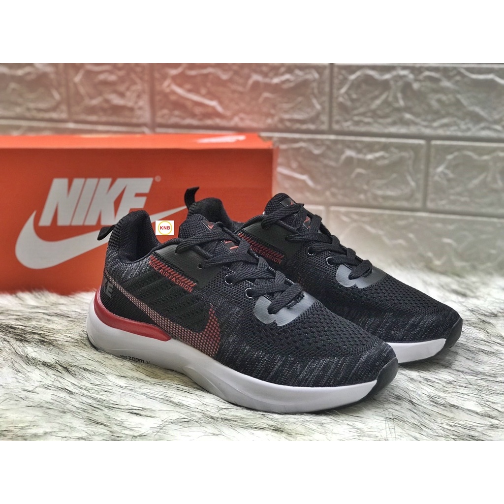 [Freeship + Tặng Kèm Tất] Giày thể thao nam Nike Zoom, Giày Nam Chạy, Đi Bộ Đế Mềm Nike Zoom đen logo đỏ