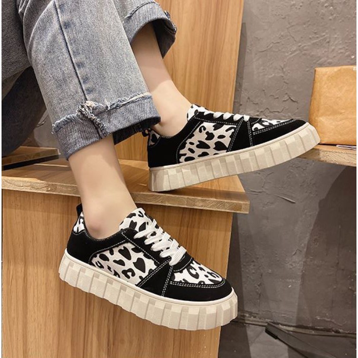 Giày bata nữ vải canvas bò sữa ngựa vằn đế cao su non 3cm phong cách Hàn Quốc cho nữ - mã T29