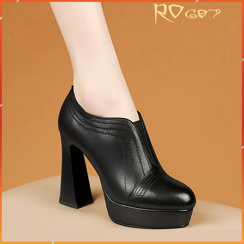 Giày boot bốt nữ cổ thấp 9 phân hàng hiệu rosata màu đen thời trang cao cấp ro607