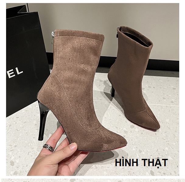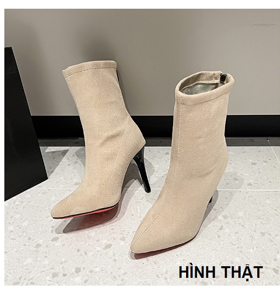 Giới thiệu Giày boots nữ cao gót 9 phân da lộn mũi nhọn cổ lửng, bốt nữ cao cấp S063