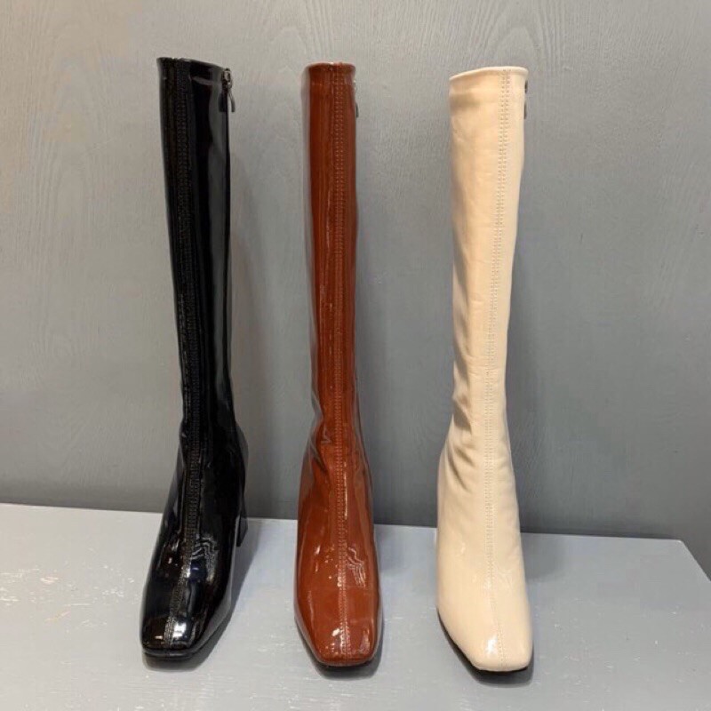 Giày Dép Nữ > Bốt > Bốt thời trang || Giày Bốt Đùi Chất Da Bóng Khóa Cạnh Gót Vát 7 Phân Hàng Đẹp Có Lót Nỉ Kèm Hộp