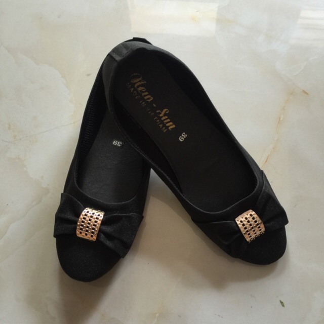 Giày Dép Nữ > Giày đế bằng > Giày bale || Giày búp bê đen nơ nhún
