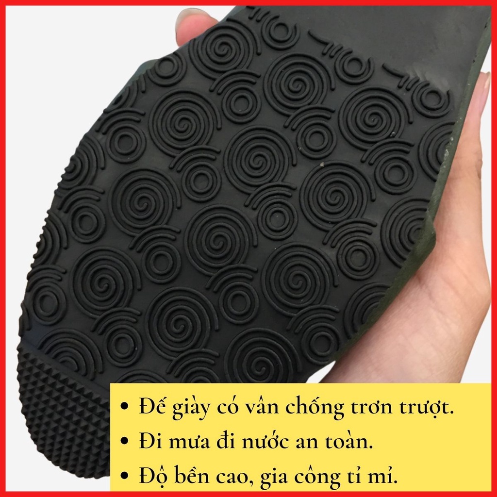 - Sản phẩm gia công tỉ mỉ, đế có vân chống trơn trượt, an toàn khi đi nước đi mưa