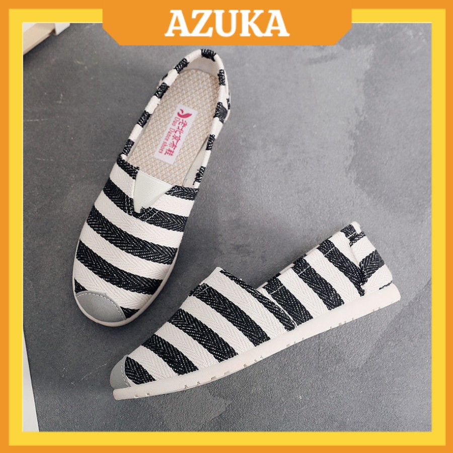 Giới thiệu Giày búp bê nữ giày lười nữ vải cao cấp đế bằng giá rẻ sọc trắng đen năng động xinh đẹp - F3