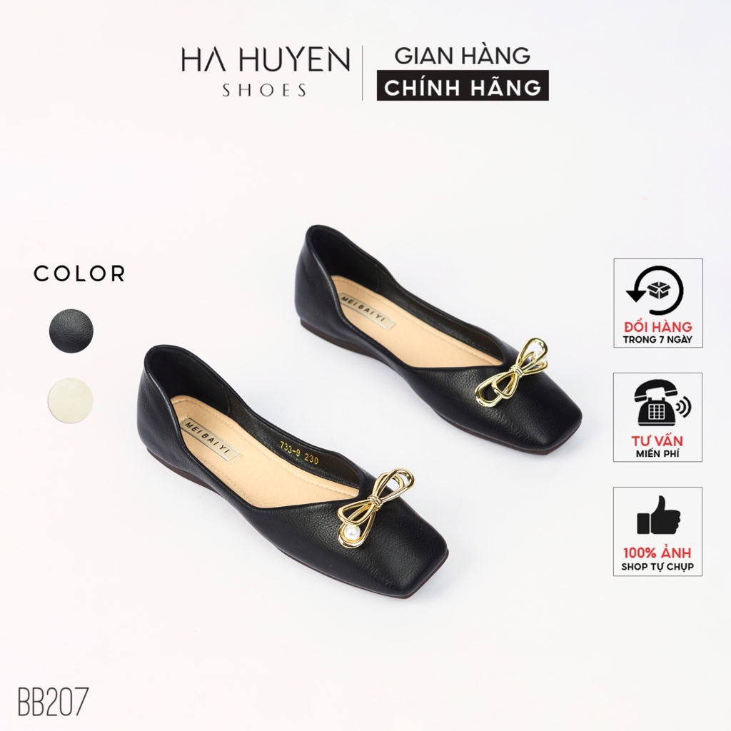 Giới thiệu Giày búp bê nữ Hà Huyền Shoes mũi vuông phối nơ kim loại sang trọng - BB207