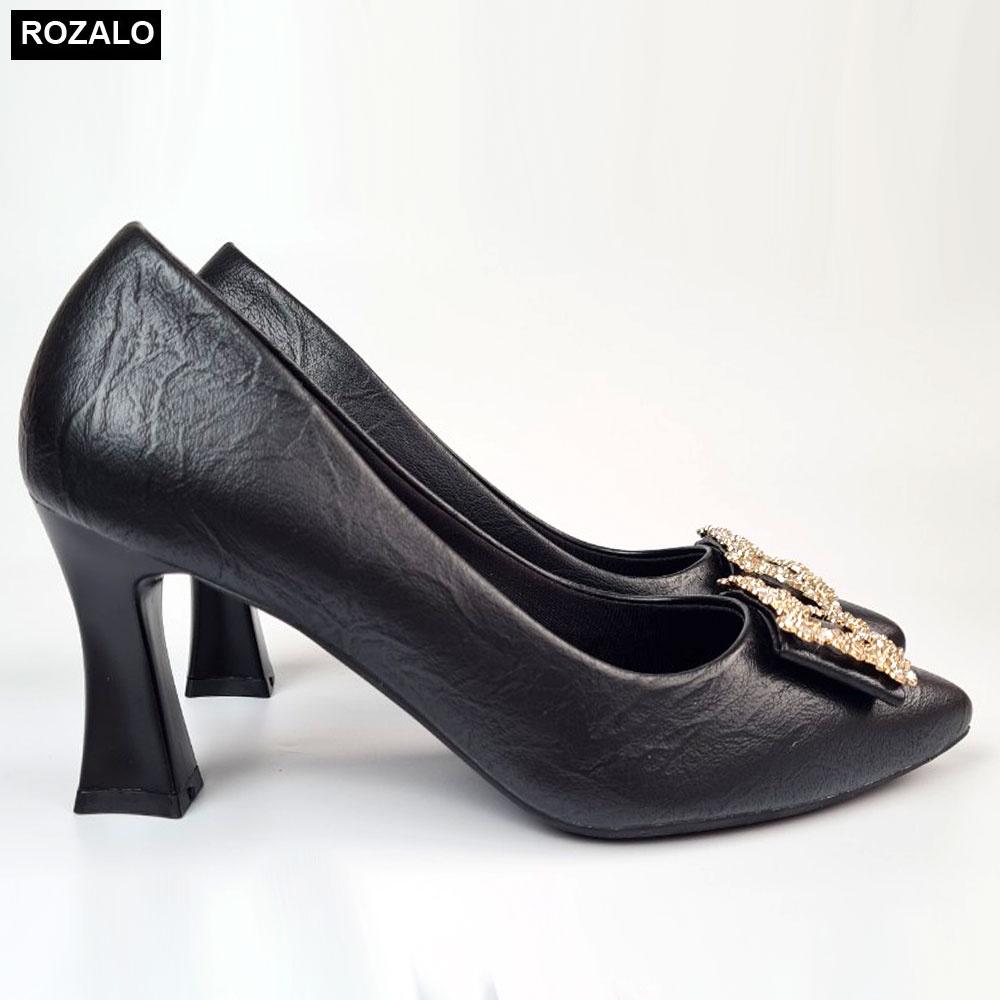 Giày cao gót 7P da sần gót vuông chống trượt đính mác đá Rozalo R8600
