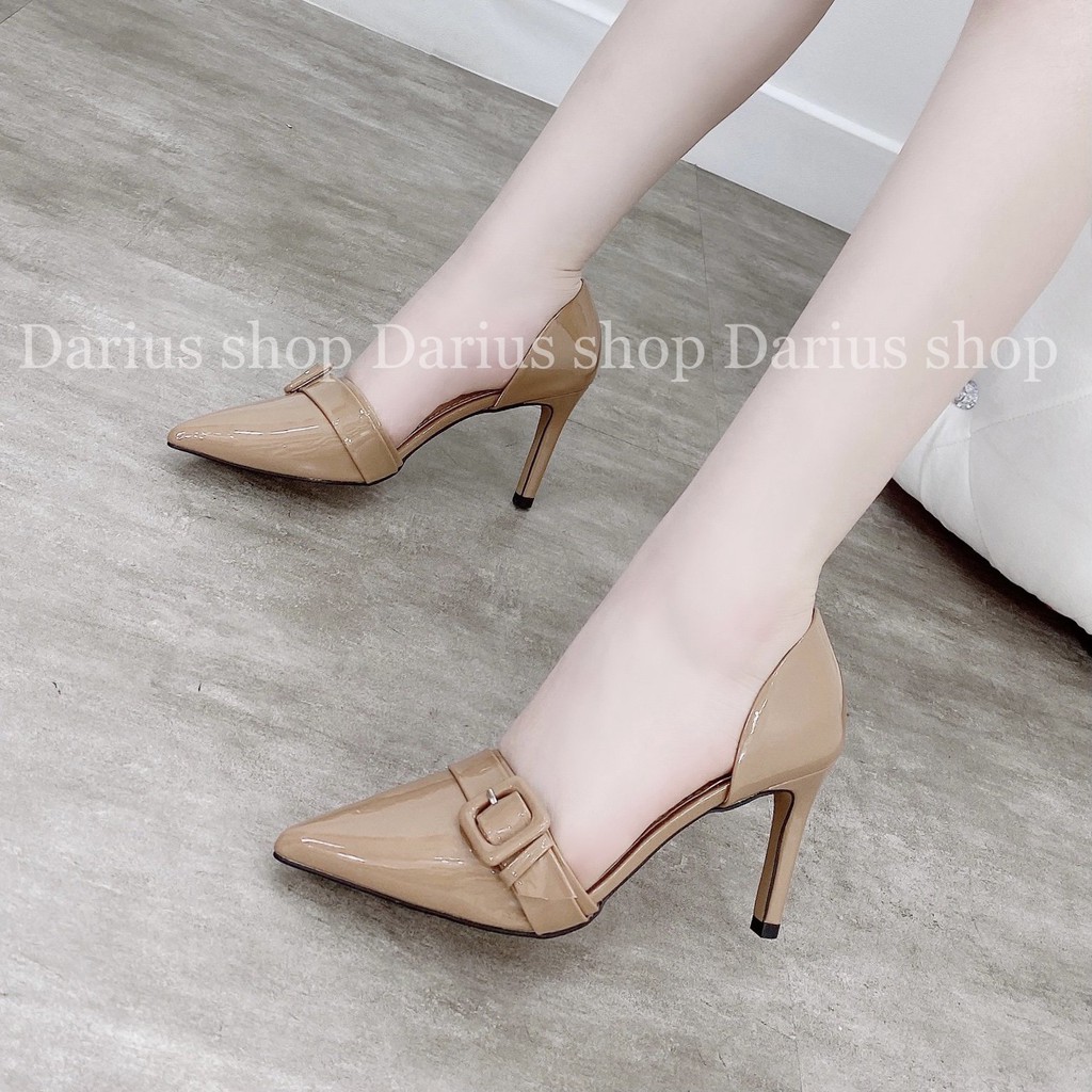 Giày Dép Nữ > Giày cao gót || Giày cao gót bít mũi hở eo gót nhọn da bóng 7cm - Mi54
