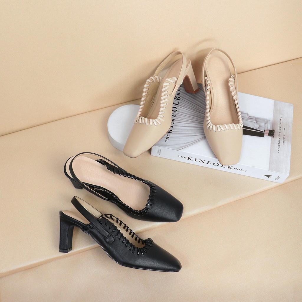 Sản phẩm: GIÀY CAO GÓT NỮ slingback 7p bít mũi quai sau hở gót đế vuông dáng sandal sục mũi vuông công sở bAimée & bAmor - MS1761.