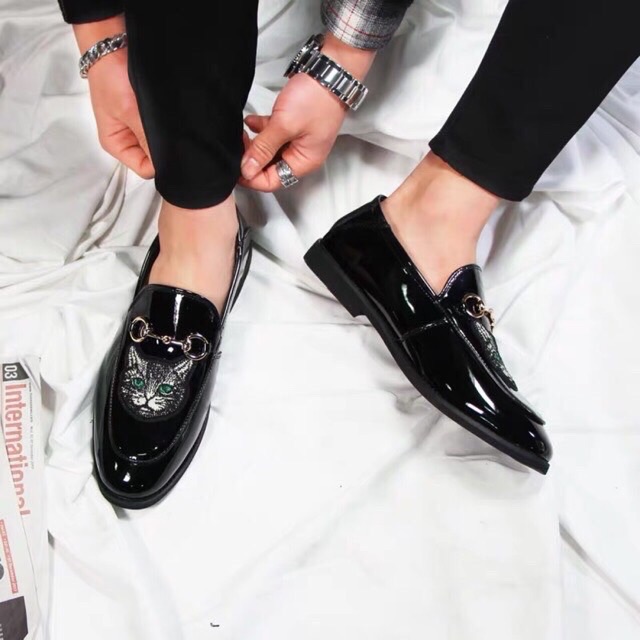 Giày Dép Nam > Giày tây lười || giày lười da nam dáng tây logo mèo (free ship)