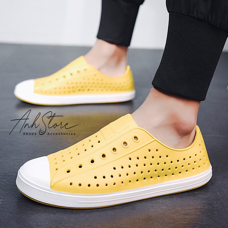 Giới thiệu Giày nhựa WNC NATlVE đi mưa, đi biển, du lịch - Chất liệu nhựa xốp siêu êm, siêu nhẹ - Màu vàng đế trắng