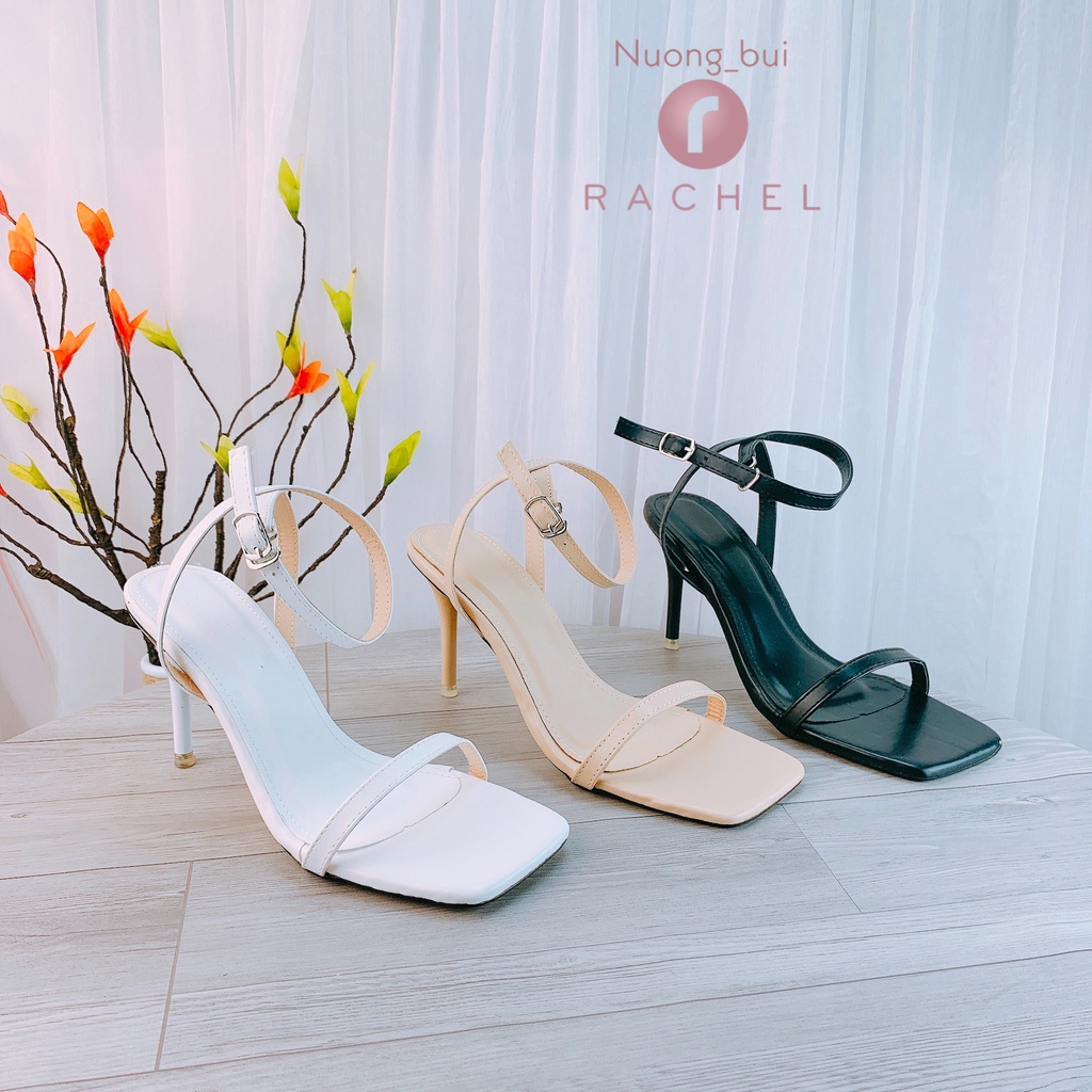 Giày sandal cao gót 8cm mũi vuông phối quai ngang sang chảnh - C48