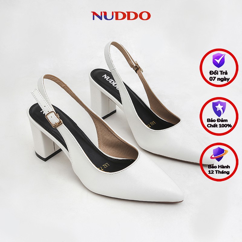 Giày slingback cao gót nữ Nuddo cao cấp gót vuông mũi nhọn 7p da mềm fom dáng chuẩn