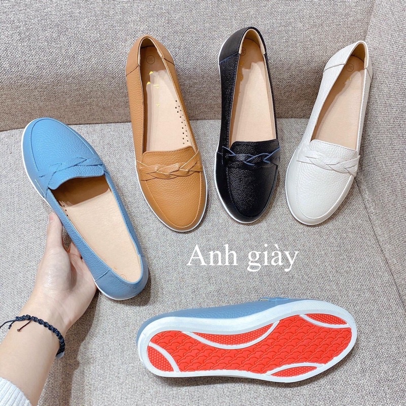 Giày slipon da thật da lì nơ bện VNXK đi mềm, êm chân( ảnh thật, kèm video)