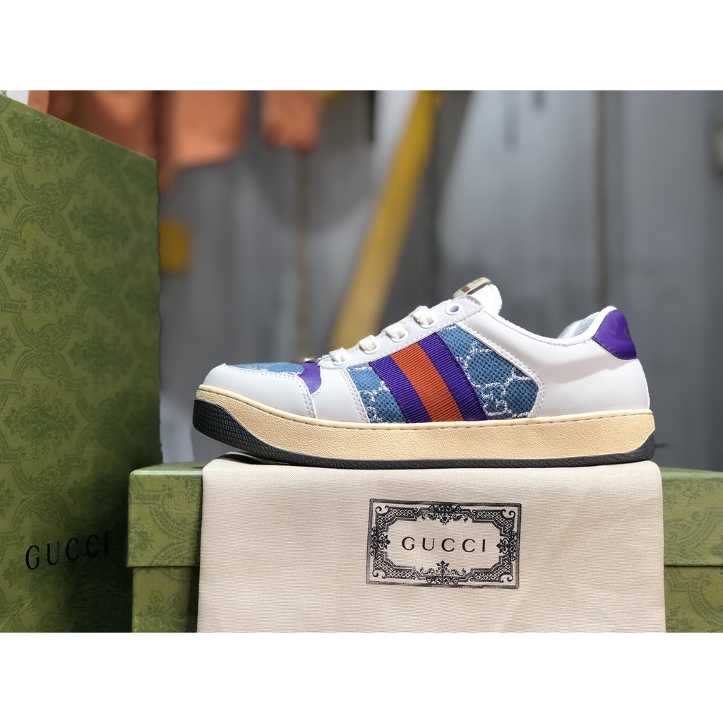 Giới thiệu Giày Sneaker Gucci Screener Leather Xanh, Tím Cao Cấp Fullbox, Giày thể thao gucci sơn tùng 2 màu xanh, tím dày dặn.