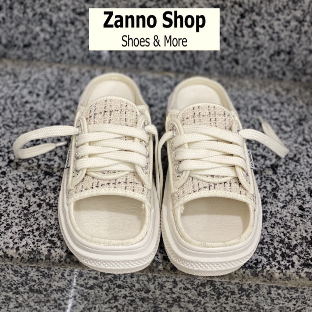 Giới thiệu Giày Sục Dây Buộc Hở Ngón ZANNO Màu Kem HOT 2022