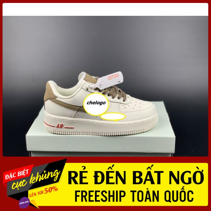 Giày Dép Nữ > Giày thể thao/ sneaker || Giày thể thao E force 1 trắng móc nâu nam nữ kèm box, tem tag, tất, đóng hộp cattong bảo vệ