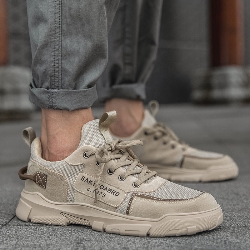 Giày Dép Nam > Giày thể thao/ Sneakers || Giày thể thao nam chất da phối vải Khaki