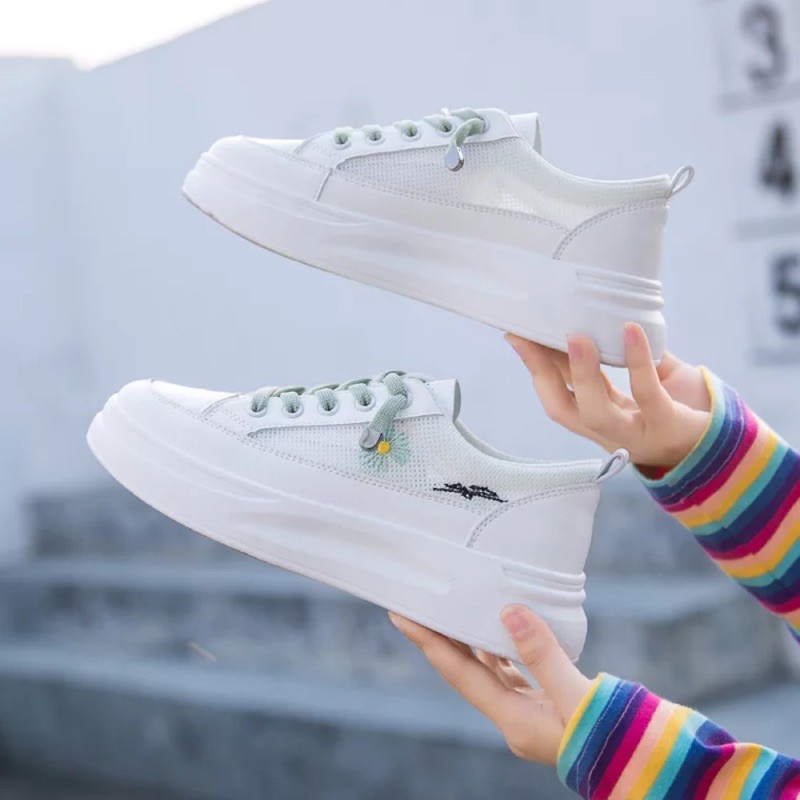 Giày thể thao sneakers nữ hoa cúc độn đế, êm chân, thiết kế nhỏ gọn, ôm sát bàn chân, màu sắc trẻ trung tươi sáng, tôn da, dễ dàng phối hợp với nhiều trang phục, thích hợp đi học, đi chơi,...