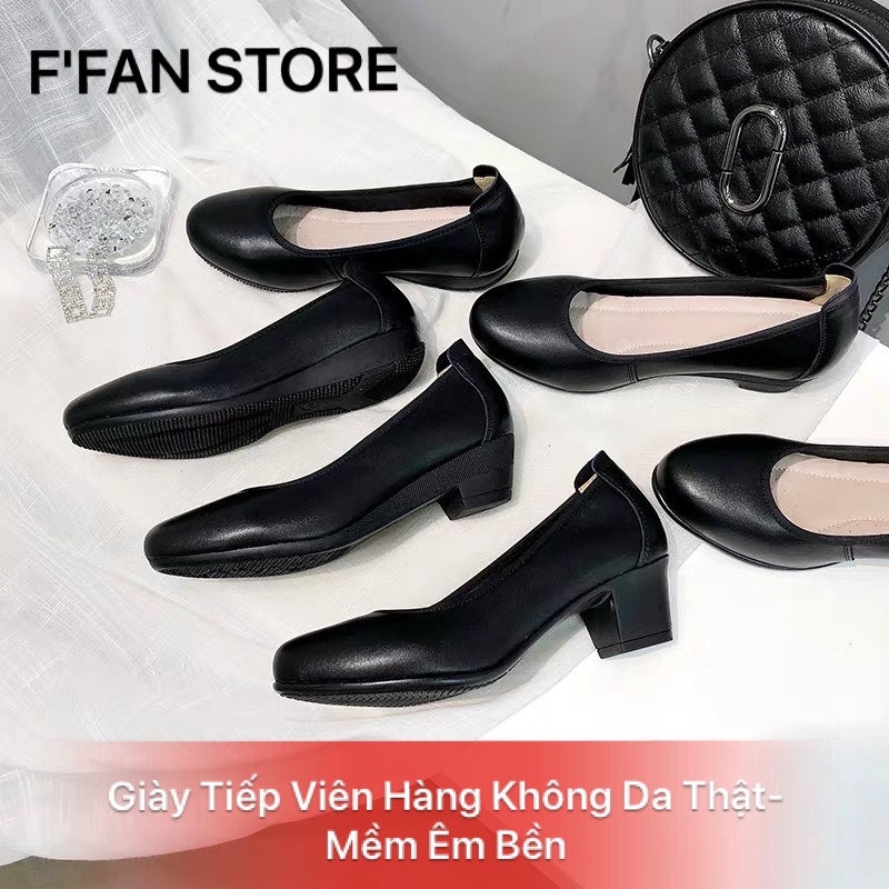 Giới thiệu Giày Tiếp Viên Hàng Không [DA THẬT] Nữ Công Sở Văn Phòng Mũi Tròn Gót vuông FFAN STORE