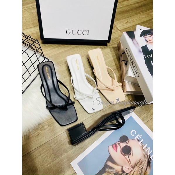 Giới thiệu (Fom bé tăng size) Guốc kẹp quai mảnh gót nhọn 6p mũi vuông GK (hàng có sẵn)