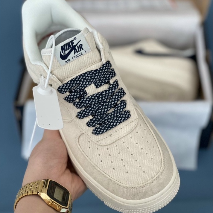 Giới thiệu [ Thanh Lí ] AF1 Beige Deep blue vải Gai Dầu- AF1 Màu Kem, air force 1 Kẻ Xanh Than Full Box +bill