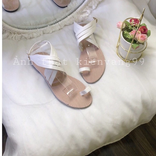 Sandal đế bệt xỏ ngón nữ nền vải quai da đế dẻo