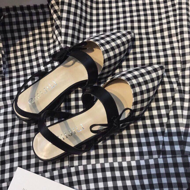 giày bệt kẻ cảo, đen mũi nhọn thắt nơ