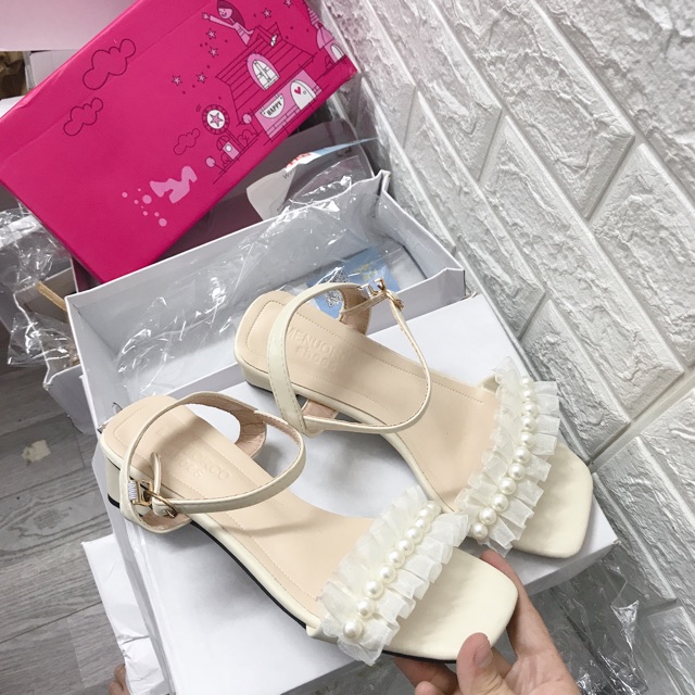 Sandal quai ngọc đế vuông ( kèm ảnh thật )