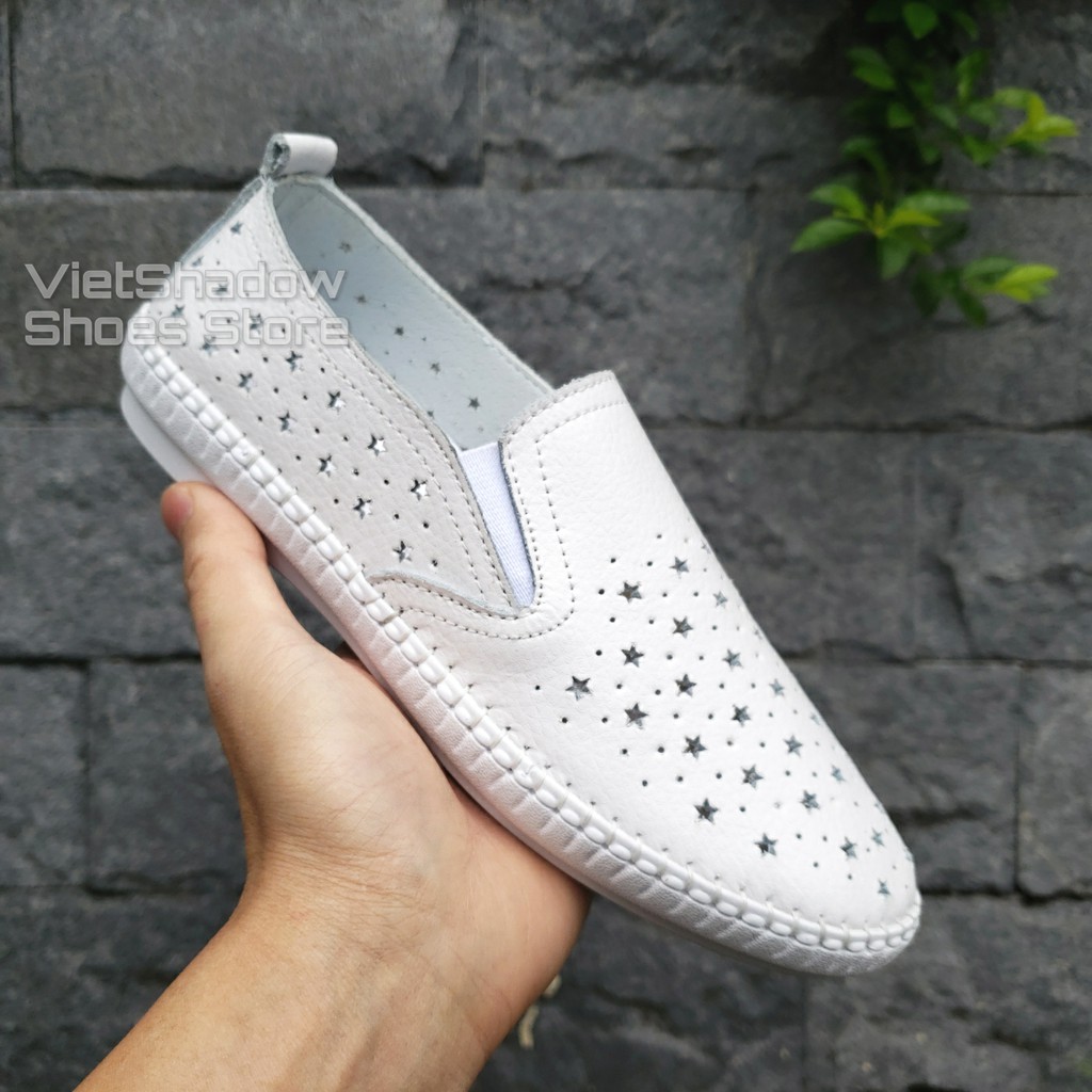 Giới thiệu Slip on da nữ - Giày lười da nữ đột lỗ hình ngôi sao, đế khâu - Chất liệu bò 2 màu (đen) và (trắng) - Mã SP 2026N
