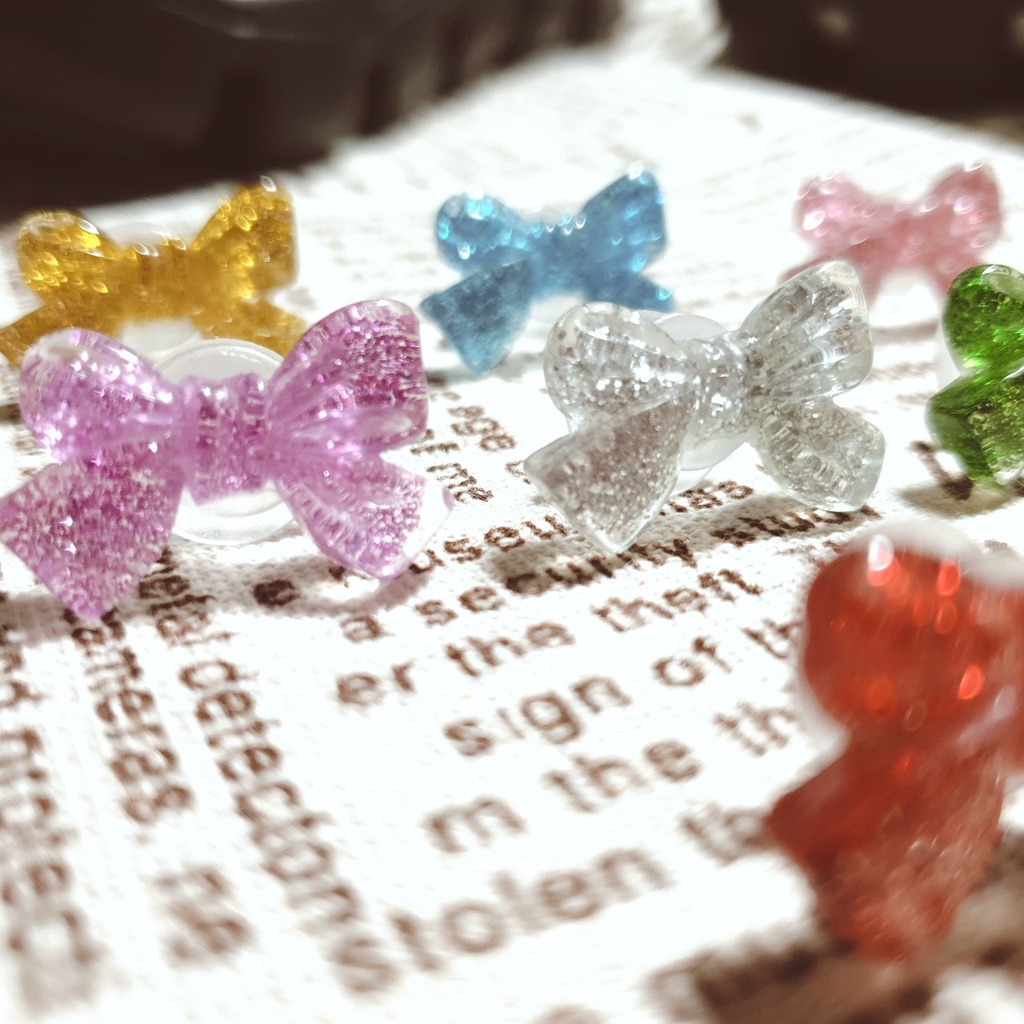 Sticker charms dán dép / nút gắn hkdesign mẫu nơ kim tuyến loại đá cứng