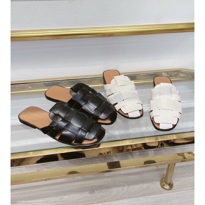 Giày Dép Nữ > Giày đế bằng > Giày sục & Giày búp bê || Sục đan thời trang quai da đan xen HOT