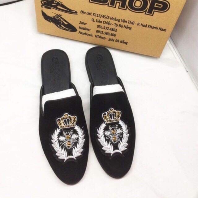 Giày Dép Nam > Giày tây lười || sục nam da lộn thêu ong vua (free ship)