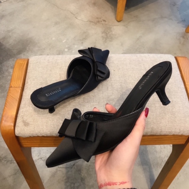 Giới thiệu Sục nơ lụa gót nhú fullbox hàng quảng châu cao cấp